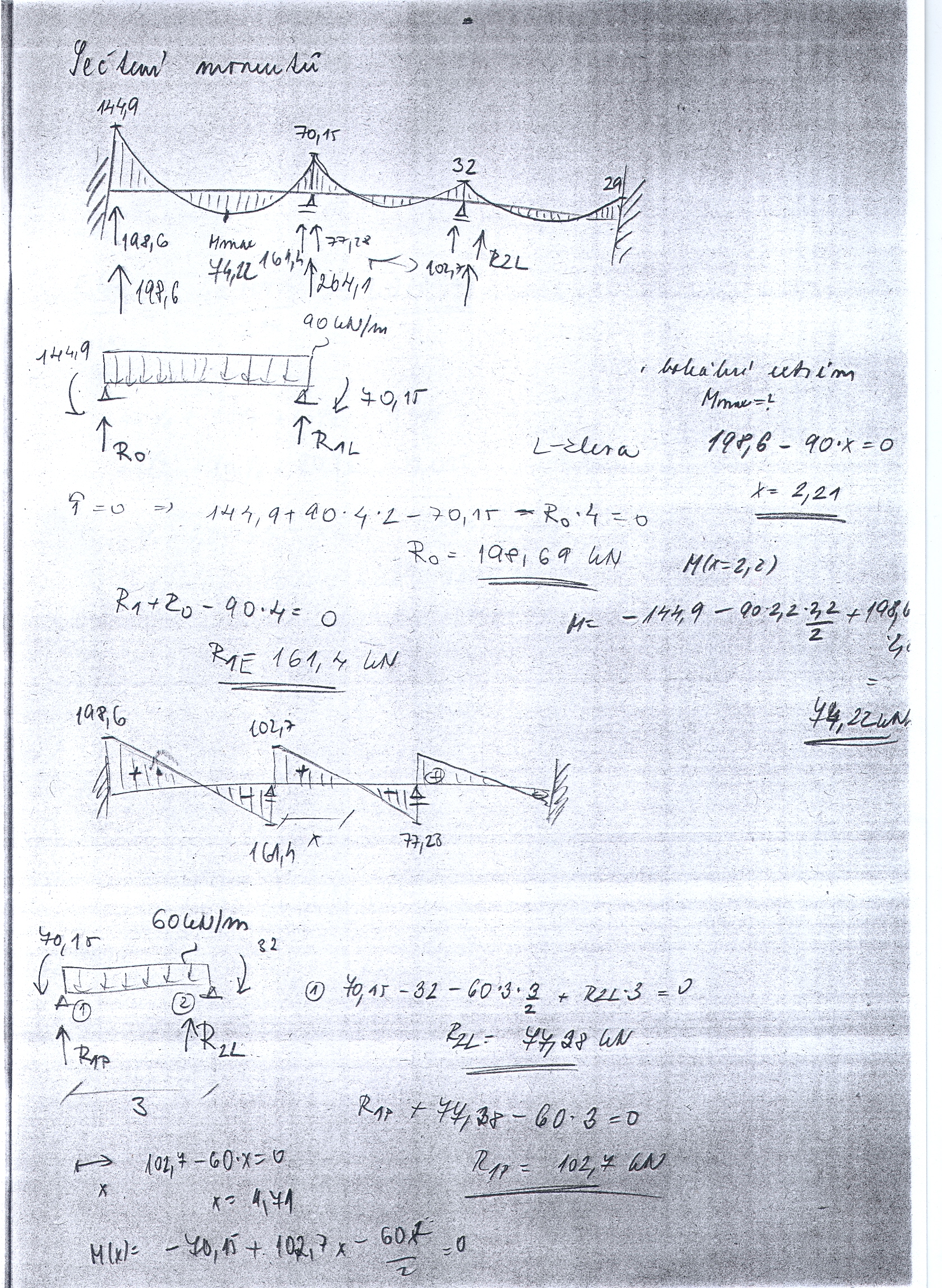 CV1-Opakování z PRPE-výpočet reakcí z integrace ohybové čáry...teorie 1přednáška.
